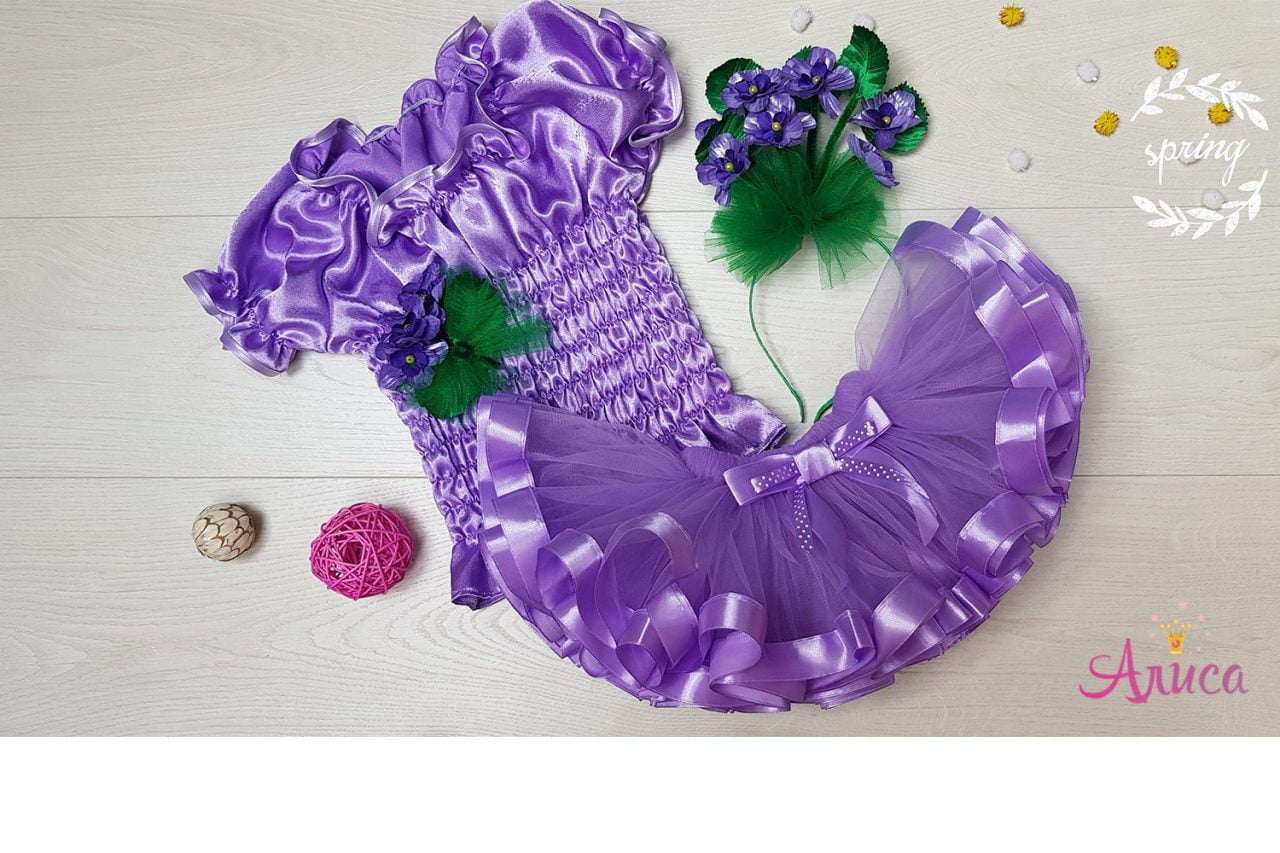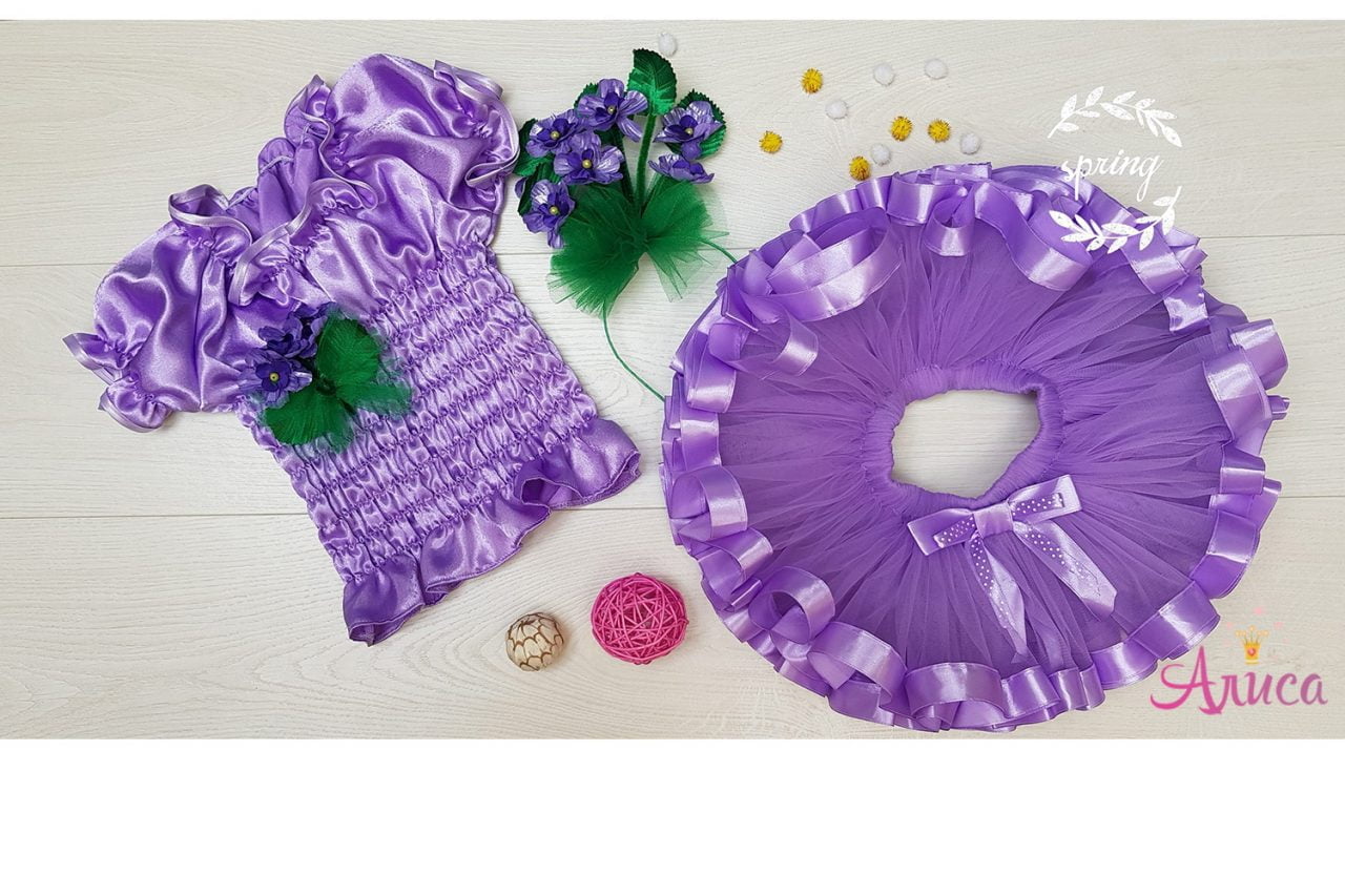 Карнавальный костюм Фиалка для девочки включает в себя следующие элементы: