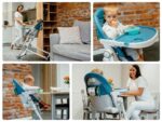 В комплект входит удобная вставка, которая позволяет маленьким детям лучше сидеть на стуле. Вставка изготовлена из 75% хлопка. На подносе есть дополнительная съемная накладка для приема пищи. Крышку очень легко мыть – ее можно успешно мыть в посудомоечной машине. Научиться пользоваться столовыми приборами непросто, и иногда это связано с чисткой. По этой причине за спинкой есть держатель для салфеток или других принадлежностей для ухода, которые могут пригодиться во время кормления.