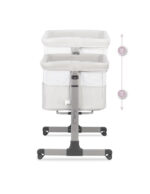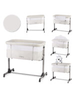 | Кроватка MoMi REVO 2-в-1 может использоваться как отдельная кроватка, так и как дополнительная кроватка, что позволит вашему малышу чувствовать себя в безопасности и комфортно. | Благодаря возможности регулировки высоты вы можете легко подогнать кроватку под высоту вашей кровати и ваш малыш всегда будет рядом с вами. Кроватка MoMi REVO имеет целых 6 уровней регулировки. | Боковая часть кроватки, которая расстегивается на молнию, обеспечит вам комфорт и легкий доступ к вашему малышу. Детская кроватка также оснащена специальным ремнем для блокировки и блокировкой в колесах для предотвращения неконтролируемого движения. |