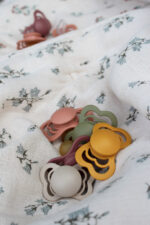 Коли ви бачите щит на пустушці BIBS Couture, у вас миттєво виникають асоціації з метеликами. Завдяки анатомічній сосці ми пристосовуємося до немовлят, які віддають перевагу анатомічній формі соски. * Соска анатомічної форми * Доступний як з натурального латексу, так і з силікону * Щит виготовлений з 100% безпечного харчового матеріалу * Також доступна нічна версія з функцією світяться в темряві * Розроблено та виготовлено в Данії/ЄС Детальніше про сосок: Couture поставляється з анатомічною соскою, яка вигнута вгорі для природного прилягання до піднебіння дитини з кутовим кінчиком для зручного розміщення язика. Цей ніпель сприяє розміщенню язика та техніці смоктання, коли боки язика навколо соска, як це відбувається під час грудного вигодовування. Кутовий кінчик означає, що дитині не потрібно смоктати так сильно, щоб соска розплющилася в роті. Соска оснащена клапаном, який випускає повітря, коли дитина закриває соску, тим самим сплющуючи сосок, щоб природним чином нагадувати ротову порожнину дитини. Соска доступна як з натурального латексу, так і з силікону. Оскільки латекс натурального каучуку є натуральним матеріалом, колір може змінюватися. Детальніше про щиток: Легкий щиток ретельно розроблений з великими отворами з обох боків, щоб забезпечити мінімальний контакт з чутливою та ніжною шкірою навколо рота дитини, що означає меншу ймовірність накопичення вологи зі слини, яка може спричинити висипання та рани. Оскільки соска не симетрична, пустушку потрібно правильно розмістити в роті дитини. Щоб забезпечити це, щиток був спеціально розроблений, щоб нагадувати метелика, тому легко побачити, у який бік повинна повертатися пустушка. Щиток доступний у двох різних розмірах, які відповідають розміру соски. Чим більше соска – тим більше щиток. Щит виготовлений з 100% безпечного харчового PP. Розмір: Доступні розміри 1 і 2 як з натурального каучукового латексу, так і з силікону. Важливо повідомити вам, що наші різні розміри є лише орієнтиром, якого ви повинні дотримуватися. Наш досвід показує, що наведені нижче розміри є загальними, а отже, і нашою спільною рекомендацією. Розмір 1: 0+ місяців Розмір 2: 6+ місяців Безпека: Відповідає європейському стандарту EN 1400+A2.