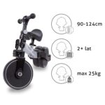 - 3-ступеневе регулювання відстані між кермом і дитиною, обмежений поворот керма захищає дитину від падіння під час повороту