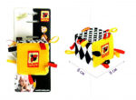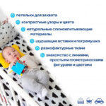 Його контрастні зображення, лінії і фігури неодмінно зацікавлять малюка, адже їх так цікаво вивчати. Шелесткі деталі і брязкальце усередині подарують посмішку і радість. Різнобарвні петельки малюк буде з інтересом перебирати крихітними пальчиками.