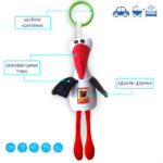 Спеціальне кріплення дозволяє зафіксувати іграшку на візку, ліжечку, розвиваючому килимку або автокріслі. З лелекою можна грати вдома, на прогулянці, в подорож.