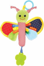 Малюки будуть в захваті. Можна натиснути на дзвінку пискавку, пом’яти шелесткі крильця або спробувати «смачний» прорізувач, доторкнуться до іграшки, і вона почне дзвінко пищати.