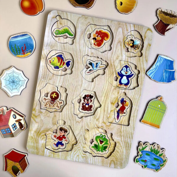 Дерев’яний пазл-вкладиш “Хто? Де живе?” Ubumblebees (ПСД059) PSD059 сортер