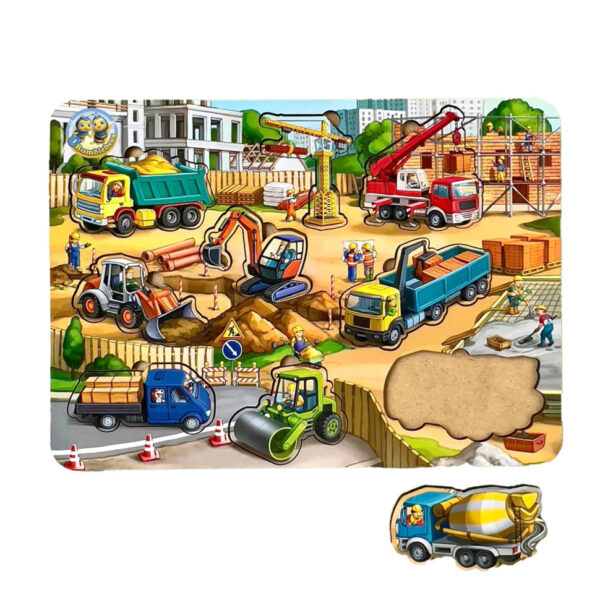 Дерев’яний пазл-вкладиш “Будівельний майданчик” Ubumblebees (ПСД123) PSD123, 9 елементів