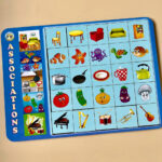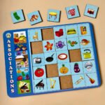 Дерев’яний планшет-рамка, на якому зображені п’ять різних картинок. Квадрати в ряд (всього 5 рядів – 25 плашок) з предметами або персонажами з картинок. Необхідно правильно зібрати 5 рядів плашок із зображенням предметів і персонажів.
