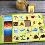 Гра складається з 20 плашок. Такий сортер допоможе пояснити дитині: які існують стихії у природі (вода, вогонь, повітря і земля), де ми зустрічаємо їх і до якої стихії належить той чи інший предмет: сірник – вогонь, хмара – вода, лопата – земля.