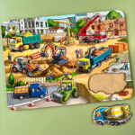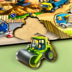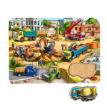 У цьому великому сортері вся будівельна техніка – це вкладиші, які зручно діставати пальчиками з основи. Фон – це сам будівельний майданчик з технікою, будівельниками і матеріалами. Дітям буде цікаво розглядати кожен елемент малюнка.