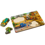 У цьому сортері вся будівельна техніка – це вкладиші, які зручно діставати пальчиками з основи. Фон – це сам будівельний майданчик з технікою, будівельниками і матеріалами. Дітям буде цікаво розглядати кожен елемент малюнка.