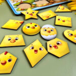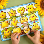 12 вкладишів-курчат, які за формою є різними фігурами. Потрібно поставити кожну на своє місце. Вивчати фігури стане веселіше і наочніше.