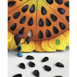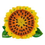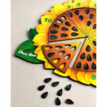 З допомогою такого барвистого математичного соняшника можна легко вивчити з дитиною цифри і навчити його вважати. Гра також відмінно підходить для вивчення дробів та допомагає дитині в ігровій формі зрозуміти і побачити, що таке “частина і ціле”. Насіння – це відмінний лічильний і сортувальний матеріал.