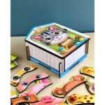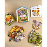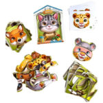 У наборi 39 деталей та 13 карток з тваринами. Завдання малюка: зiбрати тварин, як на малюнку. А ще можна створювати власних тваринок: додати котику вуха тигра або ротик собачки.