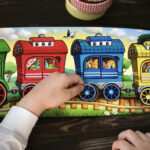Розкажіть, хто із звірів їде у вагоні-ресторані, хто у вантажному, а хто в загальному вагоні. Розгляньте пасажирів, придумайте, куди кожен з них їде, розгляньте, що за багаж вони взяли з собою в дорогу і обов’язково перевірте їх квиточки, раптом хтось не заплатив і їде “зайцем”. Поясніть, навіщо потрібна аптечка в кабіні машиніста. На прикладі коліс поясніть поняття “великий”, “середній” і “маленький” розміри. На прикладі дверцят вагонів поясніть, що таке “права” і “ліва” дверки. Знайдіть батька кожного малюка. Хто із звірів відноситься до диких, а хто до домашніх тварин? Хто з них хижий, а хто травоїдний. Міксуйте як захочете двері, колеса, дахи, багаж і самих тварин. Всі елементи взаємозамінні.