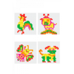 Як зібрати мозаїку? Малюнок викладається на пластикове поле дрібними фішками різних форм. Всього в комплекті 222 елементів 5-ти кольорів! Розмір самого маленького квадратика 4х4 мм. На допомогу дітям також є спеціальний інструмент, яким зручно виймати фішки з поля. Для юних митців у наборі є інструкція, згідно якої можна зібрати 4 рисунки: півника, метелики, собачки і бичка.