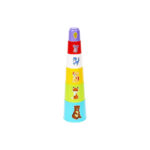 6 різнокольорових формочок для піску, які малюк складає в пірамідку заввишки 35 см або вкладає один в один. На кожній формочці – веселий звірок.