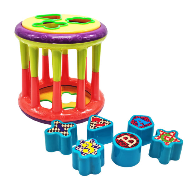 Іграшка “Будиночок” – це велика хатинка з 4-а дверима під червоним дахом. Через фігурні отвори в дверях всередину можна проштовхнути фігурки тварин: жаби, конячки, ведмедики і метелики. А щоб дістати звірят, необхідно відкрити дверцята відповідним ключем. Для допомоги малюкам кольорові підказки – фігурки звірят, дверей і ключиків збігаються за кольором. Форма ключика також не випадкова і відповідає замочку на конкретній двері: квадрат, трикутник, ромб і зірка. Через отвори у даху можна проштовхнути форми геометричних фігур. Ці формочки спеціально спроектовані для правильного навчання – вони високі, і їх не можна проштовхнути боком, або невірне отвір.