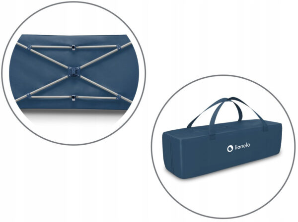 Практична сумка. Прикріплена сумка полегшує транспортування ліжечка. Завдяки невеликим габаритам, у складеному вигляді (76 х 20 х 20 см) JOY легко поміщається у багажник автомобіля.