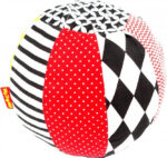 М’ячик-брязкальце серії Black & White TM Macik пошитий з натуральних тканин. Його контрастні зображення, лінії і фігури неодмінно зацікавлять малюка, адже їх так цікаво вивчати. А дзвінке брязкальце всередині подарує посмішку і радість. Гра з м’ячем навчить дитину координувати рухи, а контрастні зображення і брязкальце допоможуть малюкові в формуванні зору і розвитку слуху. М’ячик мякий і абсолютно безпечний для малюка! Іграшка прекрасно переносить щадне прання і швидко сохне. Склад: бавовняна тканина; швейна фурнітура; звукові елементи; холлофайбер. Розмір: 16 × 16 × 16 см. Розмір в упаковці: 23 × 17 × 16 см.