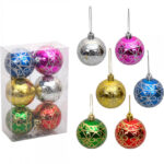 Пластикові ялинкові прикраси. Діаметр: 6 см. Упаковані у пластикову коробочку 6 штук. Колір: мікс. Ціна вказана на набір 6шт.
