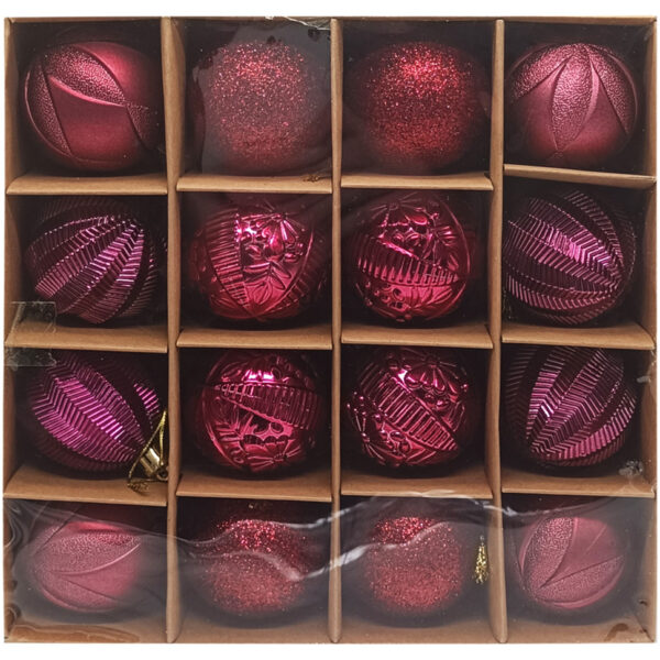 Пластикові ялинкові прикраси. Розмір іграшки: 6,5 * 6,5 ** 2 см. Упаковані в пластикову коробочку 6 штук. Колір: мікс. Ціна вказана на набір 6шт.