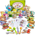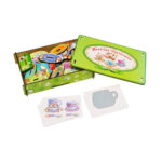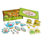 У дерев’яній коробочці: 20 чашечок (різного розміру), 2 чайника, 22 блюдця і 20 ложечок. Дитині необхідно підібрати до чашечок їх блюдця і ложечки за індивідуальним малюнком. Ця гра – відмінний помічник у вивченні понять”великий і маленький”, рахунку і основ етикету.