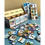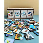 4 тематичні скриньки з різними видами транспорту: водний, сухопутний, повітряний та космічний. У наборі йде 40 плашок із реалістичними малюнками для сортування та 4 картки для гри в лото. Дитині потрібно розкласти весь транспорт асоціаціями: автобус – це наземний вид транспорту, а корабель – водний і т. д. Другий варіант гри: викладайте по 3 плашки з тематикою, наприклад, повітряного транспорту, а 4 з поїздом і просіть дитину знайти зайву плашку в цьому ланцюжку.