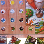 У наборі йде знімна підказка-фон. Дитині потрібно зрозуміти фрагмент якої картинки на підказці та знайти його.