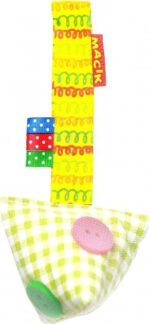 Приємна і м’яка на дотик підвіска виконана з натуральних слинопоглинаючих матеріалів. Склад: бавовняна тканина; різнофактурні матеріали; швейна фурнітура; звукові елементи; холлофайбер. Розмір: 10 × 22,5 × 8 см.
