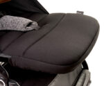 Коляска швидко та легко складається й, що найголовніше, займає обмаль місця, тому легко поміщається в багажник навіть найменшого автомобіля. Маленький мандрівник захищений 5-точковими ременями безпеки та знімним наголов'ям. Вони стабілізують його поставу та захищають у разі будь-якої небезпеки на дорозі.