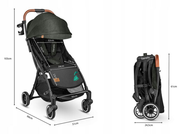 У колясці Emma від Lionelo є колеса, обладнані амортизаторами, завдяки яким малюк зможе подрімати навіть під час руху нерівною місцевістю. Це гарантія максимального комфорту та обмеження від ударів. Зручний хід гарантує вам можливість блокування передніх коліс, а гальмо на задній осі можна використовувати однією ногою. Складана конструкція полегшить транспортування та зберігання коляски.
