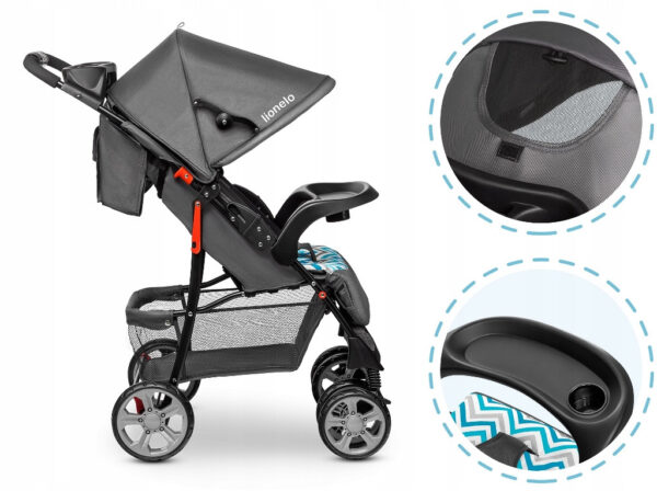 - Подвійний механізм блокування для запобігання самостійному складанню коляски