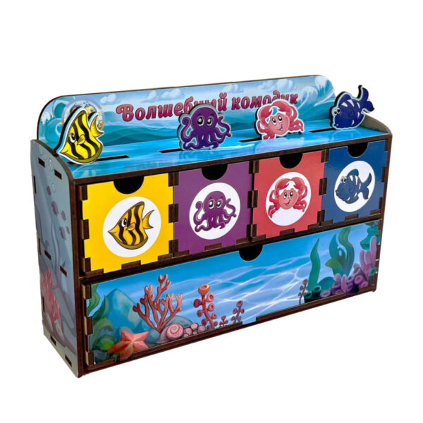 Дерев’яна настільна гра “Морські жителі-1” Ubumblebees (ПСД003) PSD003 сортер-комодик