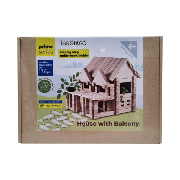 Дерев’яний конструктор “Будиночок з балконом” Igroteco 900248, 136 деталей