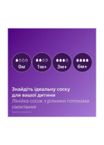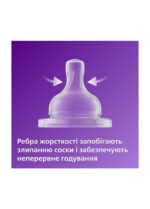 Форма соски забезпечує надійне захоплення, а ребра жорсткості запобігають злипанню соски і забезпечують безперервне годування.