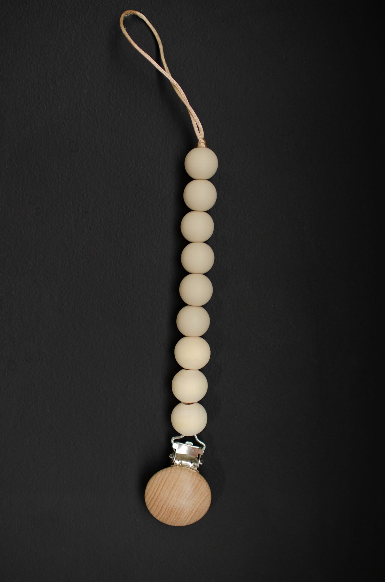 Тримач виготовлений із кульок харчового силікону з дерев'яною кліпсою. Це дуже зручна річ, ви не тільки перестанете шукати соску по дому та постійно мити її на прогулянках на вулиці, але і для дитини під рукою завжди буде додаткова іграшка (прорізувач).