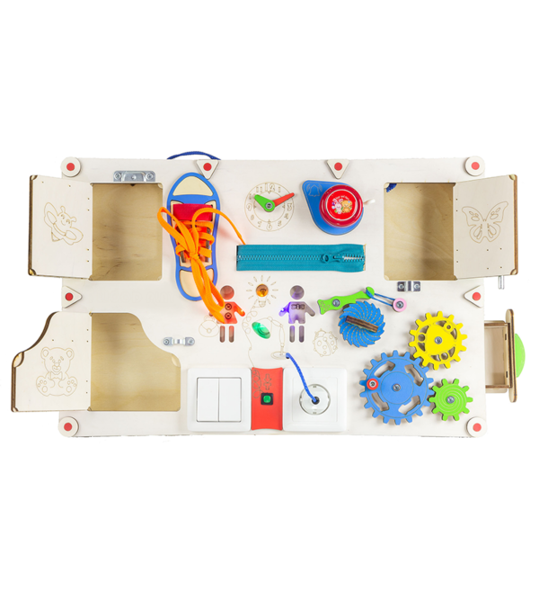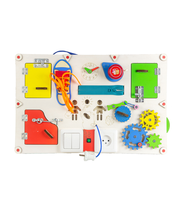 Бізіпланшет – це професійно створена, багатогранно розвиваюча іграшка, яка допомагає виробляти і розвивати необхідні навички дрібної і великої моторики, а також логічні, ігрові та побутові навички у дітей. Оригінальний дизайн і колірна гамма доповнені достатком розвиваючих, нестандартних, дорослих елементів, які так привабливі і бажані для малюків, які пізнають цей світ.