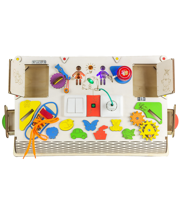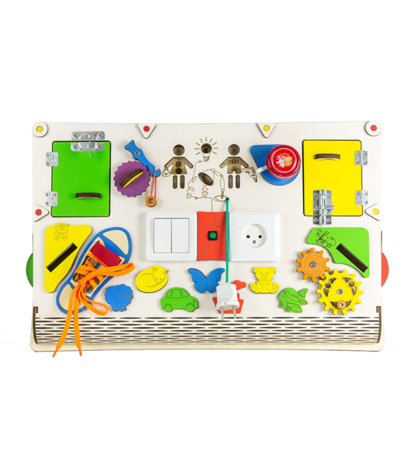 Бізіпланшет – це професійно створена, багатогранно розвиваюча іграшка, яка допомагає виробляти і розвивати необхідні навички дрібної і великої моторики, а також логічні, ігрові та побутові навички у дітей. Оригінальний дизайн і колірна гамма доповнені достатком розвиваючих, нестандартних, дорослих елементів, які так привабливі і бажані для малюків, які пізнають цей світ.