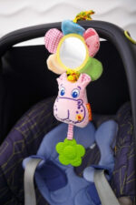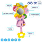 Забавна вібруюча іграшка створена для наймолодших «дослідників». Малюки будуть в захваті: можна зазирнути в люстерко або натиснути на дзвінку пискавку, пом’яти шелесткі пелюстки або спробувати «смачний» прорізувач. Потягніть за іграшку, і вона почне дзвінко вібрувати. Іграшка приємна і м’яка на дотик, тому що виконана з натуральних слинопоглинаючих матеріалів. Завдяки універсальному кріпленню іграшку можна закріпити на колясці, ліжечку, автокріслі або до дуг розвиваючого килимка. Склад: бавовняна тканина; різнофактурні матеріали; швейна фурнітура; звукові елементи; холлофайбер; вібромеханізм. Розмір: 13 × 21 × 5 см.